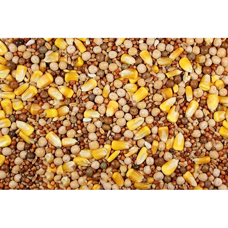 IngredientsPeas, Corn, Milo, CR Corn, White Milo, Wheat, Pigeon Vitamin Pre-mix Ingredients: Niacin, Riboflavin, Vitamin D-2, Veg. Source, Vitamin A, 500K, Veg., CA Pantothenate, Choline Bitartrate, B-Carotene 334K/G, Tween 80Guaranteed Analysis14.00%Crude