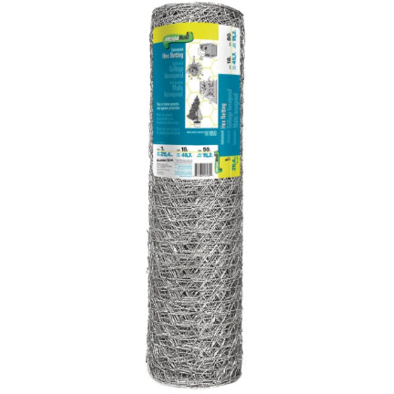 20 gauge steel. Galvanized before weaving. Put up in 25 rolls. Individually shrink-wrapped. In a display carton.