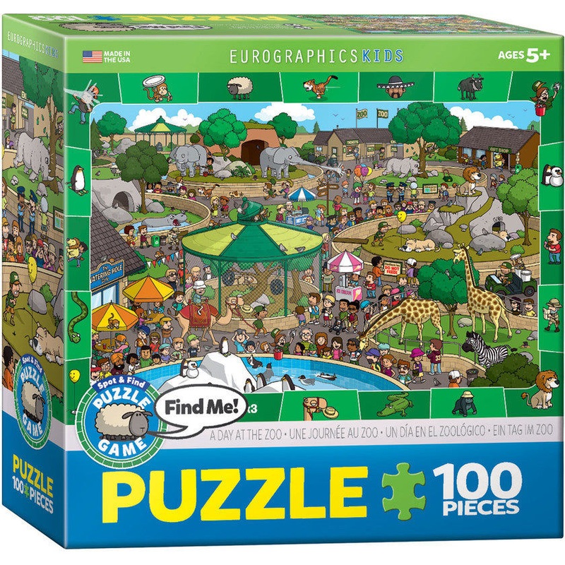 Lots of fun happens at the zoo, but you'll have to look carefully to make sure you don't miss any of it. This unique spot & find game adds to the fun of a jigsaw puzzle by challenging kids to find hidden items inside the picture.Strong high-quality puzzle