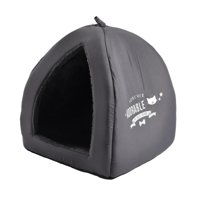 Warm and sober collection in plain fabric and matching fur interior.The cottage will provide all the necessary comfort for cats!This small cocoon and firm refuge provides isolation and tranquilitySize: 37 x 37 x 42 cmComposition: 100% polyesterMaintenance: