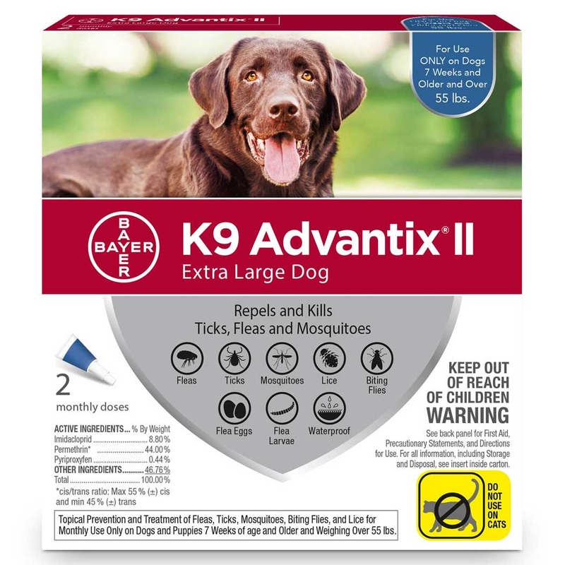 "K9 Advantix II for dogsExtra Large Dog ( Over 55-lbs. Blue Color Code)REPEL-and-kill pest protection.Protesting pups of the world, unite! We say please! No more fleas! We say please! No more fleas! K9 Advantix has heard their cries, giving them a flea-fre
