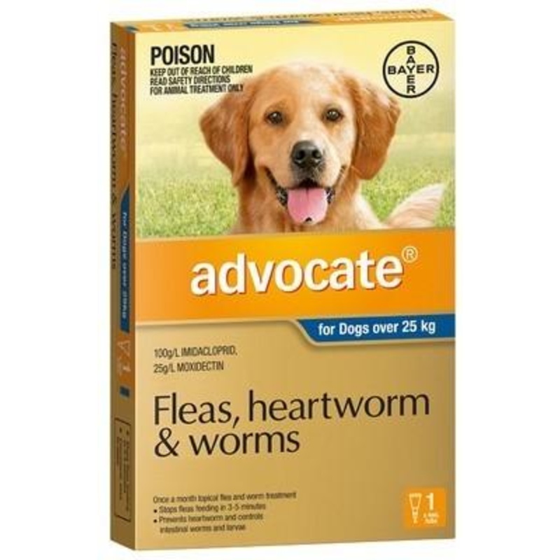 Advocate Dog Over 25kg Blue Comprehensive Parasite Protection for Extra Large DogsAdvocate Dog Over 25kg Blue is a powerful monthly treatment specifically designed for extra-large dogs. This all-in-one parasite protection offers broad-spectrum coverage, ef