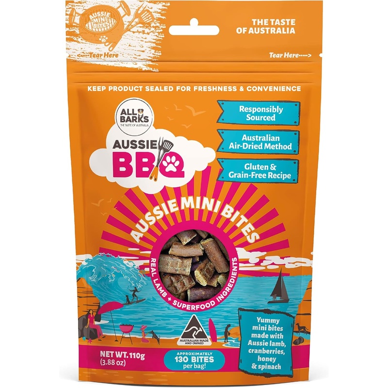 All Barks Aussie Mini Bites are made of yummy pieces of real Aussie lamb with superfood ingredients including cranberries, honey & spinach. These Australian lamb dog treats are packed full of delicious benefits.