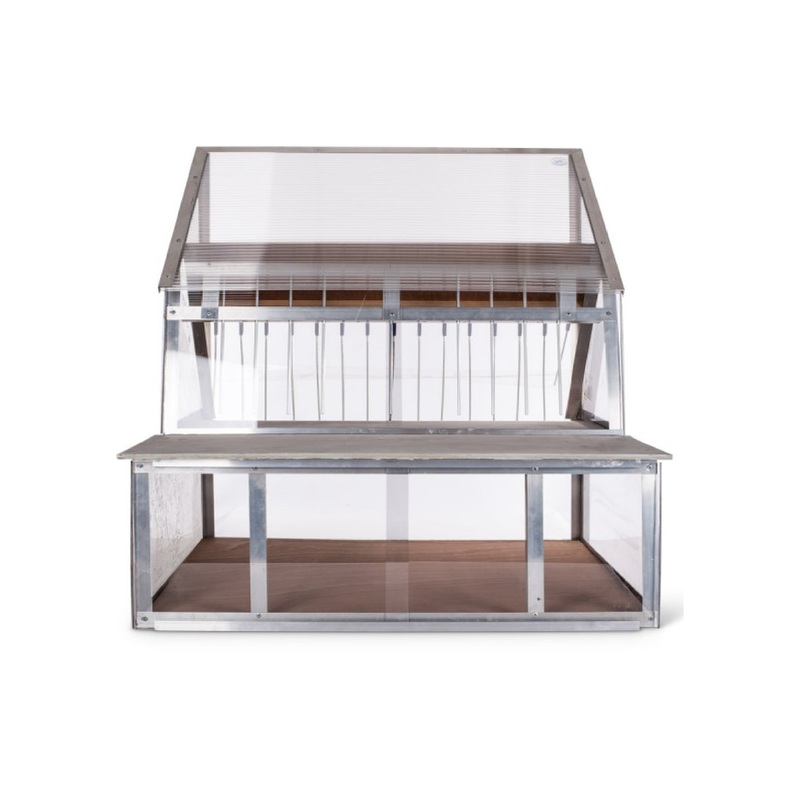 Made from top quality materials which will not rust. Mostly aluminum structure with plastic sides. Landing board made ofconcrete hardboard. Lift landing board to close sputnik.