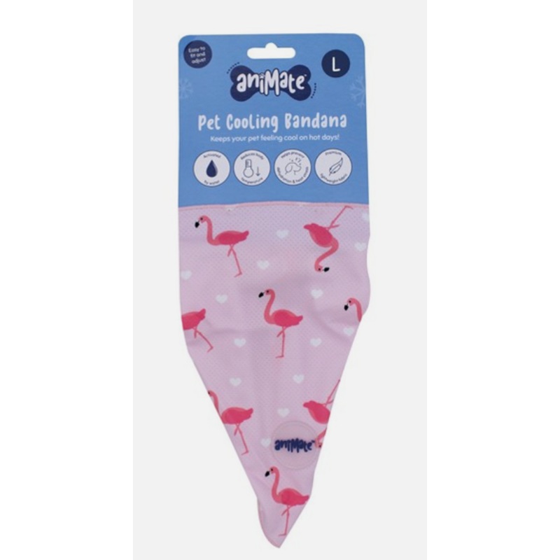 Animate Cooling Bandana FlamingoA fun and fantastic way to keep your pooch cool this summer.100% polyester which is soft & premium.Lightweight and breathable fabric.Activated by water.Reduces body temperature.Helps prevent dehydration and heat stress.Pack