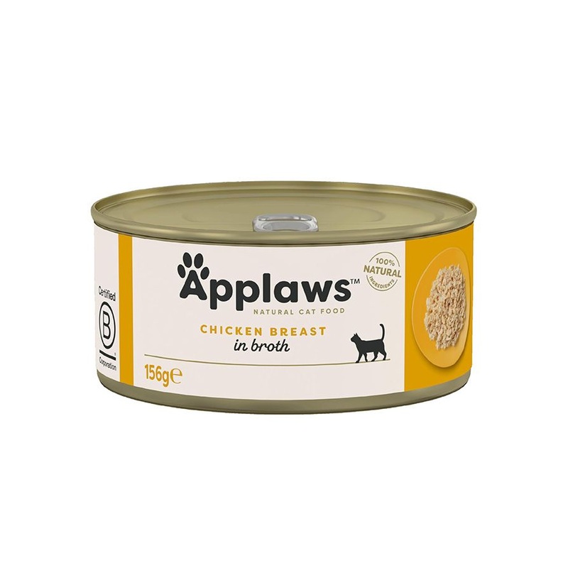 Applaws Chicken Breast in Broth Wet Cat Food 156g Tin is 100% natural, reliable and nutritional. A complementary food for adult cats with 99% Chicken Breast and Broth and only 1% Rice to ensure the highest quality for your cat. The high protein and natural