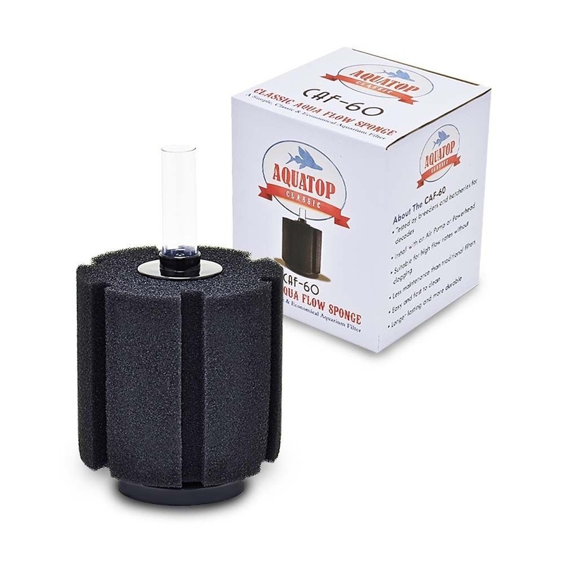 With an airlift system super bio-mechanical sponge filter features silent operation and has an excellent filtering effect while oxygenating the water. The specially developed foam materials support the colonization of bacteria allowing for mechanical and biological filtration which will break down harmful ammonia and nitrite. Features: ? For freshwater and saltwater aquariums ? Install with either an air pump or a powerhead ? Provides reliable filtration in fry aquariums and quarantine systems ? Add extra biological filtration in heavily stocked aquariums ? Models designed for virtually any size system Specifications: ? Sponge Filter ? Weighted ? Up to 60 Gallons ? 40 Pores/Linear Inch ? Base Diameter: 3.25 inches ? Sponge Diameter: 5.00 inches ? Uplift Tube Height from Top of Filter: 3.00 inches ? Sponge Height Base to Top: 5.50 inches ? Full height w/ Sponge and Uplift Tube: 8.5 inches ? Uplift I/D: 0.75 inches