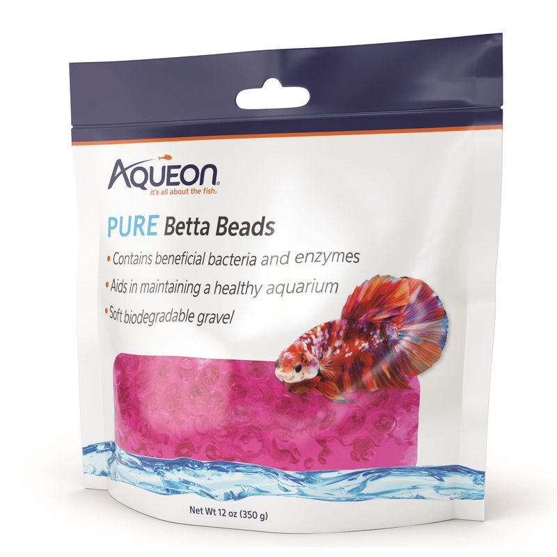Aqueon PURE Betta Beads contain beneficial bacteria that help maintain a healthy environment in unfiltered aquariums. The beneficial bacteria aids in maintaining a balanced environment while the enzymes help breakdown organic sludge for better water clarit