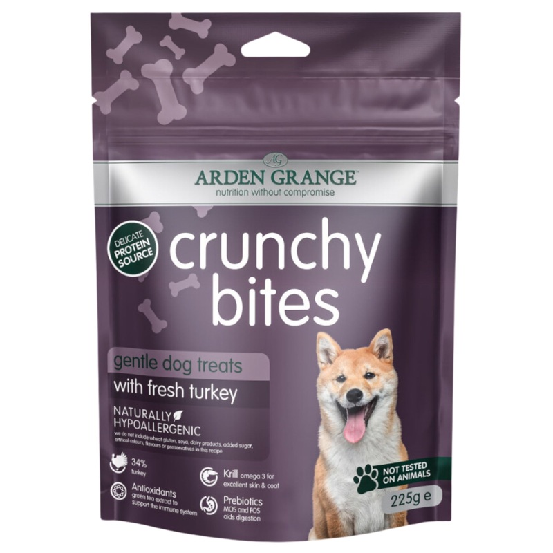 Arden Grange Turkey Crunchy Bites are delicious and nutritious dog treats, perfect for training, rewards, or occasional snacks. Made with high-quality turkey, these crunchy, grain-free bites provide natural protein to support muscle health. The hypoallerge