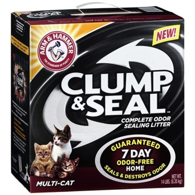 This revolutionary clumping cat litter is specially formulated to seal and destroy odors before they leave the cat litter box. Plant-derived particles help create rock solid clumps for easy scooping. And moisture-activated Micro-Granules form a tight seal around cat waste while heavy-duty odor eliminators and ARM & HAMMER Baking Soda destroy sealed-in odors on contact. Plus it?s 100% dust-free so there?s no dust cloud when you use it.Give us 7 days. We?ll give you and your kitty an odor-free home guaranteed. ARM & HAMMER Clump & Seal Litter is the first and only kitty litter that uses exclusive sealing technology. It?s so effective millions have switched to Clump & Seal Cat Litter!
