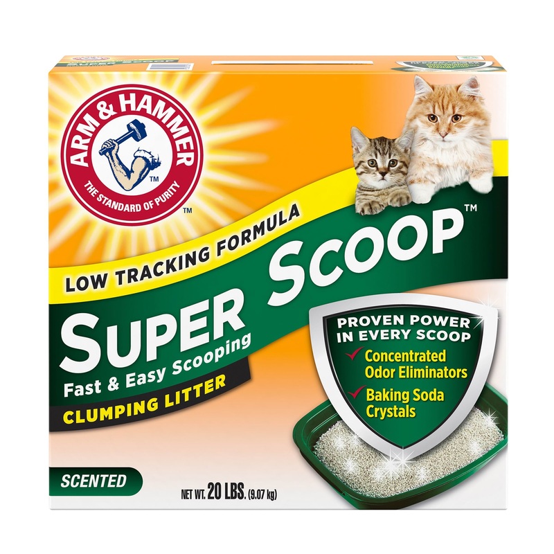 Combines concentrated odor eliminators and ARM & HAMMER Baking Soda to eliminate the toughest odors on contactOdor Control with Powerful Moisture Activated Baking Soda Crystals Eliminates Odors on ContactThe Super Scoop Formula is 99% Dust Free and Low TrackingRock solid clumping lets you remove the source of odors easilyFresh Scent Refreshes Litter Every Time Your Cat Uses the Litter Box, also available in Fragrance Free