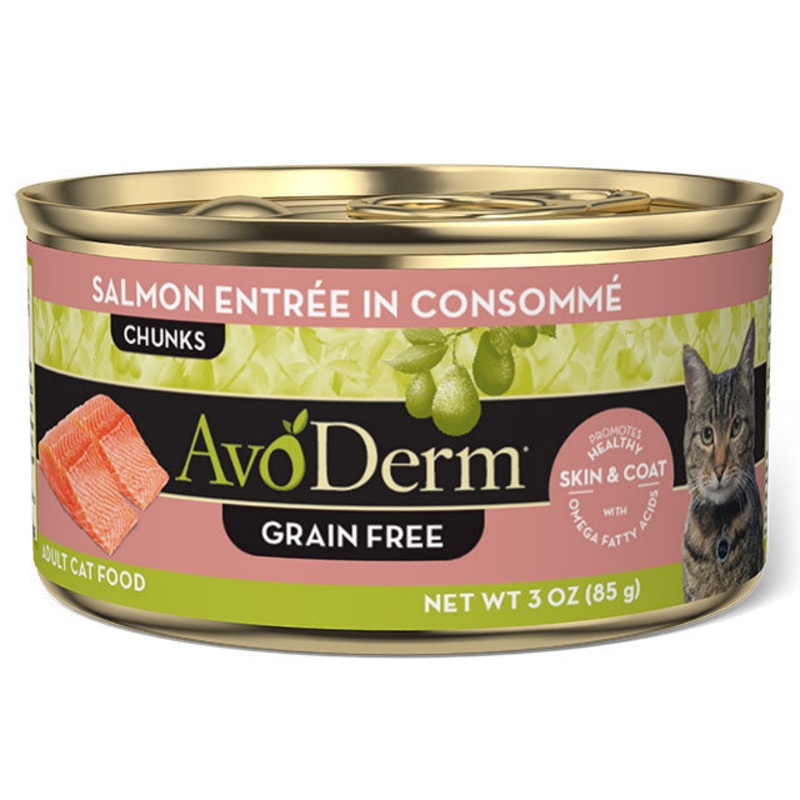AvoDerm Salmon Entre in Consumme wet cat food is formulated to meet the nutritional levels established by the AAFCO Cat Food Nutrient Profiles for Adult cats.