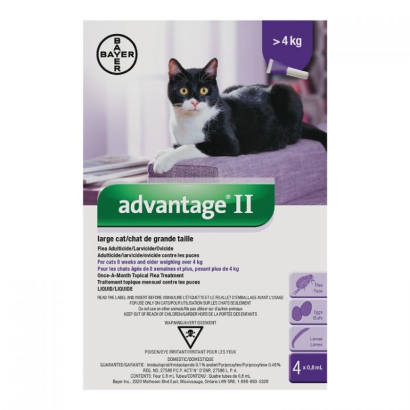 Applied as drops to the skin, the active ingredient in AdvantageII spreads throughout the skin quickly and kills fleas through contact. Unlike some other treatments available (for example, those available in pill form), your cat doesnt have to be bitten for the treatment to work.