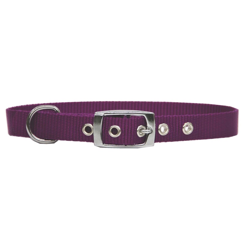 The Beau Pets Purple Single Layer Collar is a soft nylon dog collar, equipped with a quality chrome buckle and eyelets. It also comes with a D ring to safely secure your pets ID tag. These collars are durable and made to last. For correct sizing, the length of these collars is measured from the buckle to the end.