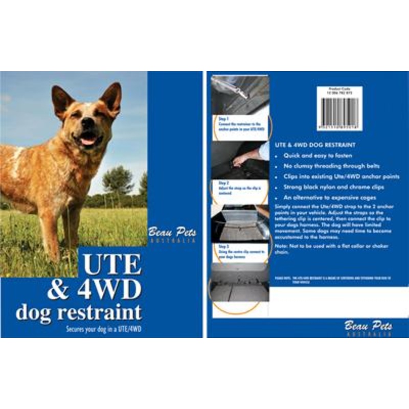The Beau Pets Ute Tie Down Strap will give you confidence that your pooch is safe in the back of a ute or 4WD when youre traveling on the road. This strap is easy to install and use, simply connect the strap to the two anchor points in your car, adjust and
