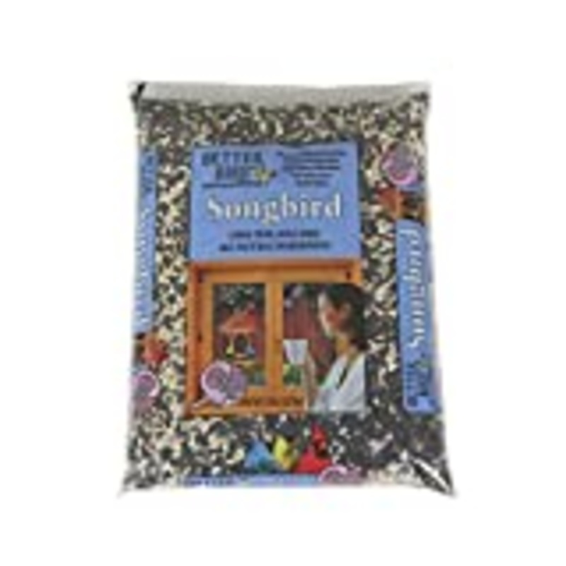 BETTER BIRD SONGBIRD FOODAttracts cardinals buntings finches woodpeckers nuthatches chickadees and many more desired birdsCorn freeMilo freeAll natural ingredientsMade in the usaUPC : 719195630052Size : 5 POUNDLength : 13Width : 10Height : 3Shipping Dimens