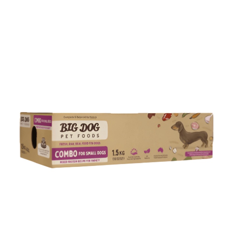 Big Dog 1.5kg Small Dog ComboBig Dog BARF Small Dog Combo is a premium raw diet made with 100% Australian, human-grade ingredients, designed to support the health and wellbeing of small breed dogs. Free from artificial colours, flavours, preservatives, and