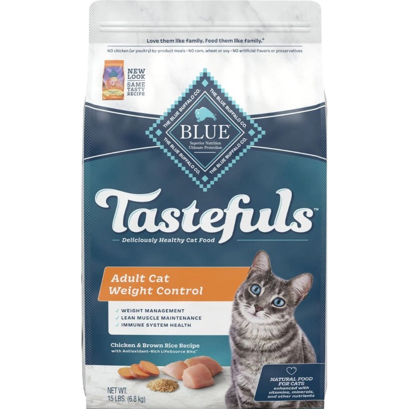 BLUE Tastefuls for Cats dry cat food recipes are made with the finest natural ingredients enhanced with vitamins and minerals. Starting with real meat as the 1st ingredient, they include wholesome grains, veggies and fruit, plus our exclusive, antioxidant-rich LifeSource Bits to support your felines overall health and well-being. BLUE for Cats has formulations to meet all of your cats life stage and lifestyle needs, from hairball and weight control to sensitive stomach and healthy aging recipes.