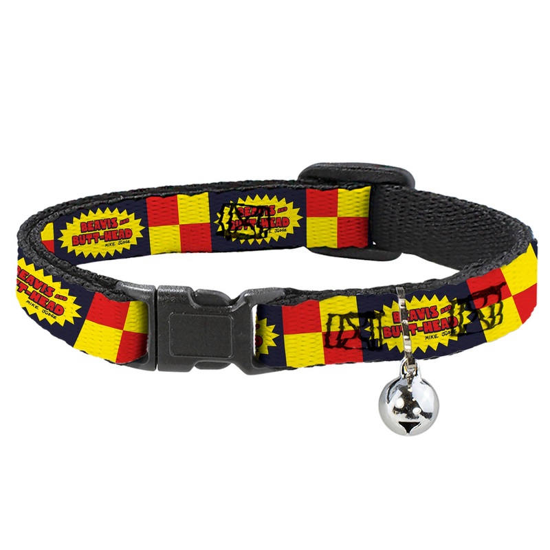 This cat collar features beautiful, original artwork and durable components including a bell. The collar is made from high-density polyester and a plastic clip which is over engineered in thickness, ensuring it will hold up to whatever your pet can dish out. This product is assembled in the USA by Buckle-Down Inc. and officially licensed by MTV.