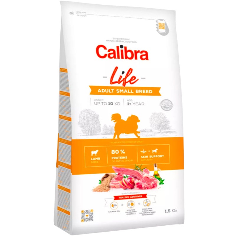 The added salmon oil for healthy skin and coat and prebiotics to care for digestion contribute to the dogs vitality. In addition, a mix of vitamins and minerals helps support overall immunity. A smaller granule size reflects the specific needs of small breeds.Salmon oil a source of unsaturated omega-3 (EPA, DHA) fatty acids necessary to support the physiological functions of the skin and coat and to improve their quality. It also has anti-inflammatory properties.Vitamins & Chelated minerals (highly utilizable organic forms of minerals) for the proper function of the organism, prevention of illnesses, and strengthening of the immune system.Fructo-oligosaccharides and mannan-oligosaccharides (FOS, MOS) are prebiotics that support intestinal microflora and the proper function of the digestive system and that strengthen the immune system.-glucans stimulate and support the immune system.Lactobacillus acidophilus (inactivated) has a paraprobiotic function and a positive effect on the immune systemComposition:Lamb protein (40 %), rice (28 %), poultry fat (11 %, preserved with tocopherols), brewers rice (10 %), apple pulp dried (3 %), yeasts, hydrolyzed chicken liver (2 %), salmon oil (2 %), prebiotics (mannan-oligosaccharides 120 mg/kg, -glucans 100 mg/kg, fructo-oligosaccharides 70 mg/kg), dried rosemary & thyme (200 mg/kg), Mojave yucca (80 mg/kg), Lactobacillus acidophilus HA 122 inactivated (15 10 cells/kg).Analytical constituents:Crude protein 27 %, crude fat 17 %, crude fibers 2,5 %, crude ash 7 %, moisture 9 %, calcium 1,6 %, phosphorus 1,2 %, sodium 0,4 %, magnesium 0,1 %, omega-3 fatty acid 0,5 %, omega-6 fatty acids 2 %Protein of animal origin from total content of protein 80 %Metabolizable Energy value 3 905 kcal/kgNutritional additives per 1 kg:Vitamin A (3a672a) 16,500 I.U., vitamin D3 (E671) 1,650 I.U., vitamin E (3a700) 300 mg, vitamin C (3a312) 250 mg, vitamin B1 (3a820) 4.8 mg, vitamin B2 6 mg, niacinamide (3a315) 23 mg, calcium pantothenate (3a841) 12 mg, vitamin B6 (3a831) 4.8 mg, folic acid (3a316) 0.6 mg, vitamin B12 0.05 mg, biotin (3a880) 0.65 mg, choline chloride (3a890) 1,800 mg, organic zinc (3b606) 90 mg, organic iron (3b106) 75 mg, organic manganese (3b504) 30 mg, organic copper (3b406) 14 mg, iodine (3b201) 0.7 mg, organic selenium (3b810) 0.2 mg.Contains EU approved natural antioxidants: tocopherol extracts from vegetable oil (1b306), ascorbyl palmitate (1b304) & rosemary extract.Daily doseAdult dog weight (kg)12456810Daily consumption (g/day)3040758090120130Feeding instructions:Feed should be fed accordingly recommended daily dose. You can adjust dose having regard to age, activity, environment of dog. Watch optimal physical condition of dog and avoid overfeeding. Its recommended to serve feed in dry or moistened with water or broth. Always prepare fresh water to drink together with feed.