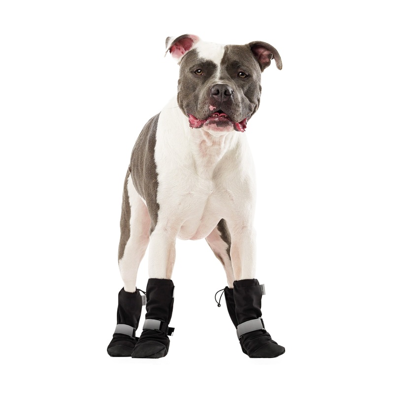 Your pup expects their walk no matter what and these dog boots make sure their little paws are protected against snow, rain and mud. The canvas fabric lets your dog feel the ground, the ultra-wide opening allows for easy entry and the hook-and-loop strap provides a secure fit. Set of four boots 100% polyester Machined wash, line dry Imported