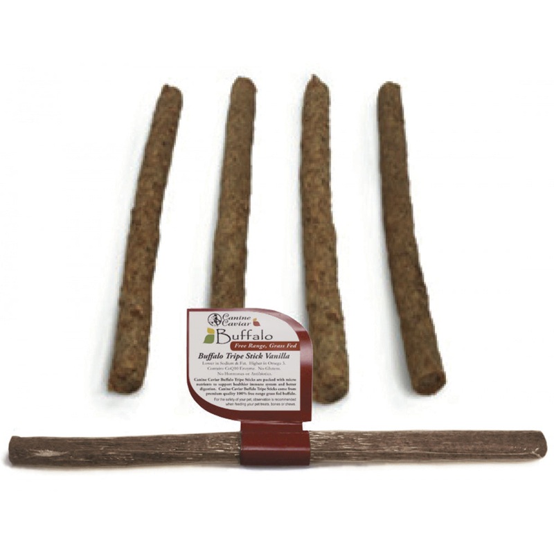 Buffalo have 70-Percent to 90-Percent less fat compared to beef, on average it has 50-Percent less cholesterol. Because they are not fed manufactured feed, there is no concern about mad cow disease at this time. Canine Caviar Buffalo Tripe are extra delicious to give your dogs a long-lasting, satisfying chew (helping to reduce tarter and maintain your dogs teeth and gums). Canine Caviar Buffalo Tripe come from premium quality 100-Percent free range grass fed buffalo.