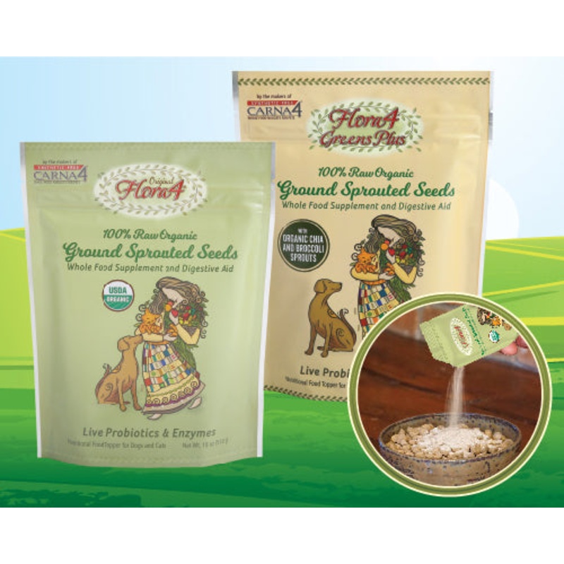 New!Flora4 Greens Plus with sprouted Broccoli !Our amazingFlora4 Ground Sprouted Seed mixessimplify the chore of effectively supplementing the live probiotics, plant enzymes, phytonutrients and whole food vitamins & minerals that are lacking in an all-meat