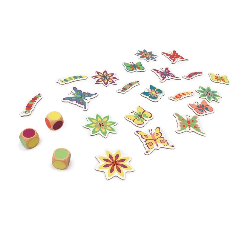 Roll the 3 dice and look for a butterfly, flower or caterpillar with these colours.