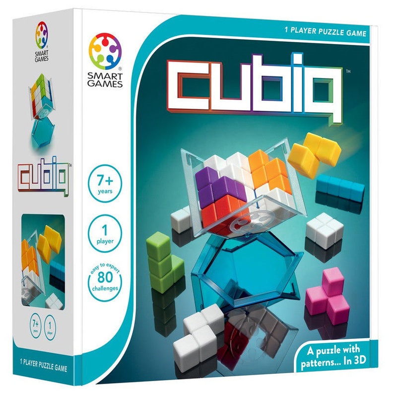 Can you create 3D patterns with the 8 colorful puzzle pieces and their 8 white counterparts? Put your spatial insight, logic and deduction skills to work as you create cubes with a unique colour pattern in each challenge! The transparent tray opens to become your game board.