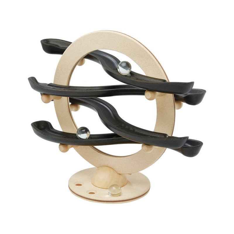 CURVY CLICK CLACK: Watch the marbles ride the curve and wind down the tracks with a pleasant click clack. Tracks feature speed bumps to keep the marbles on trackGrooves at base provide a place to hold marblesSustainability FeaturesSustainably made from rub
