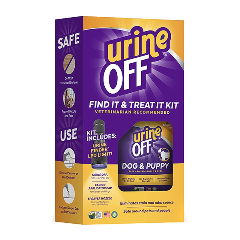 Urine Off Dog & Puppy Formula is a veterinarian-recommended product for canine urine odor and stain removal. The Urine Off Hi-Power LED Urine Finder is the ideal tool for locating hard-to-find urine deposits. Most urine deposits are invisible to the naked