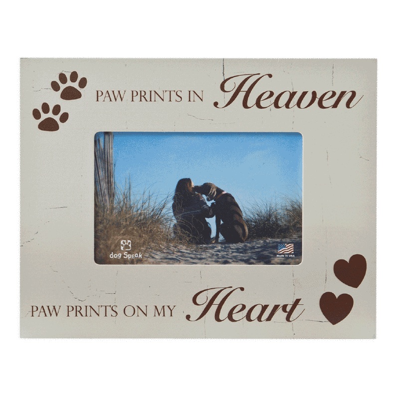 HORIZONTAL WOOD FRAME - PAW PRINTS IN HEAVENThis is very important time in all pet lovers lives when they must say goodbye. They will want to cherish and hold on to special memories. This frame is the perfect pet sympathy gift for that.Our original design