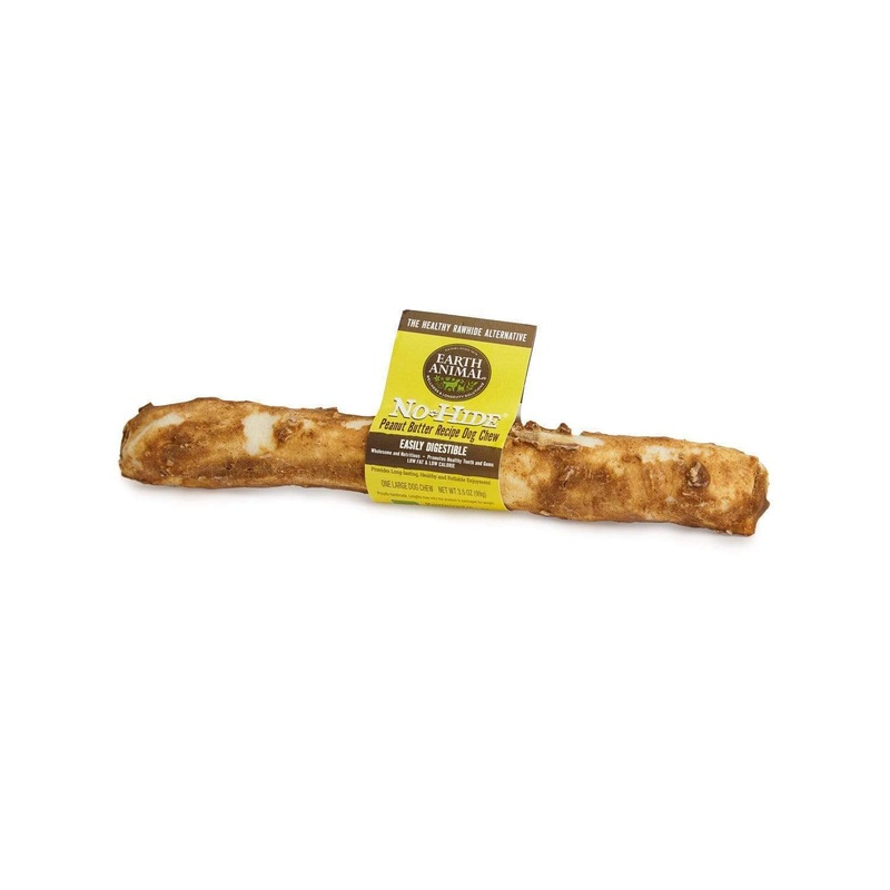 DescriptionEarth Animal No-Hide is a nutritious that provides dogs with a healthier alternative to Rawhide. These chews are long-lasting, easily digestible and are made from peanut butter powder + 6 simple ingredients. And, with no chemicals, additives, bl