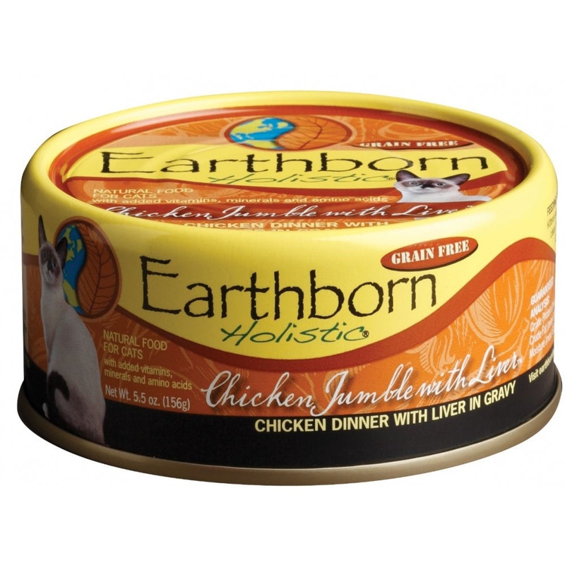 Earthborn Holistic Chicken Jumble with Liver canned Chicken Dinner with Liver in Gravy is an excellent source of high quality protein for cats and kittens. This grain-free dinner consists of both chicken and liver providing a delicious, highly digestible d