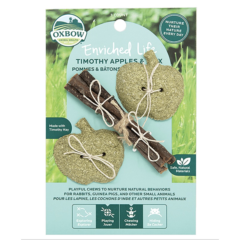 Enriched Life Timothy Apples & Stix Small Animal Treat & Toy 3 Stix, 2 Hay Chews
