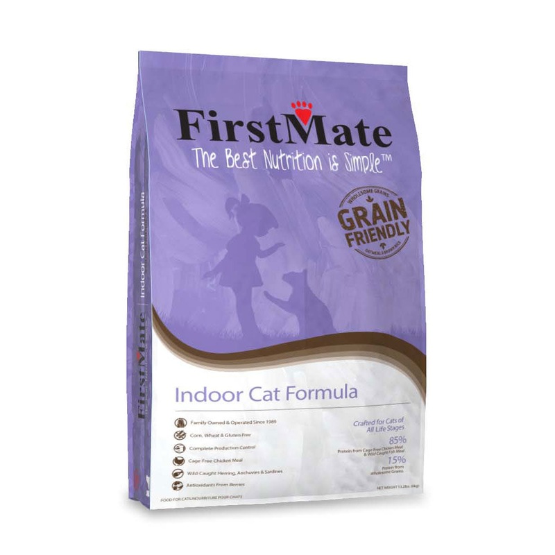 Our Indoor Formula uses humanely raised Canadian Chicken and Wild Caught Herring, Anchovies, and Sardines as a healthy source of protein. This low-fat, reduced calorie formula is optimal for indoor cats. The Grain Friendly category is free of corn, wheat, soy, potato, and peas. FirstMate Indoor Cat Formula is Formulated to meet the Nutritional Guidelines Established by the AAFCO Cat Food Nutrient Profiles for All Life Stages.
