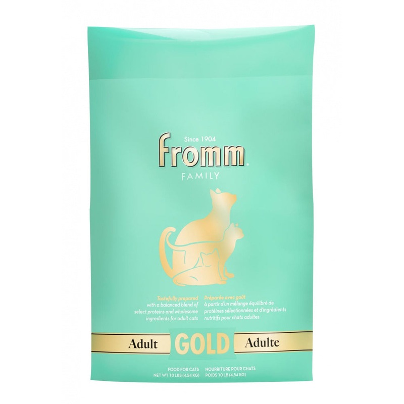 Tastefully prepared with a balanced blend of select proteins and wholesome ingredients for adult cats. Fromm Family Adult Gold Food for Cats is specially formulated to provide your normally active adult cat with complete and balanced nutrition.