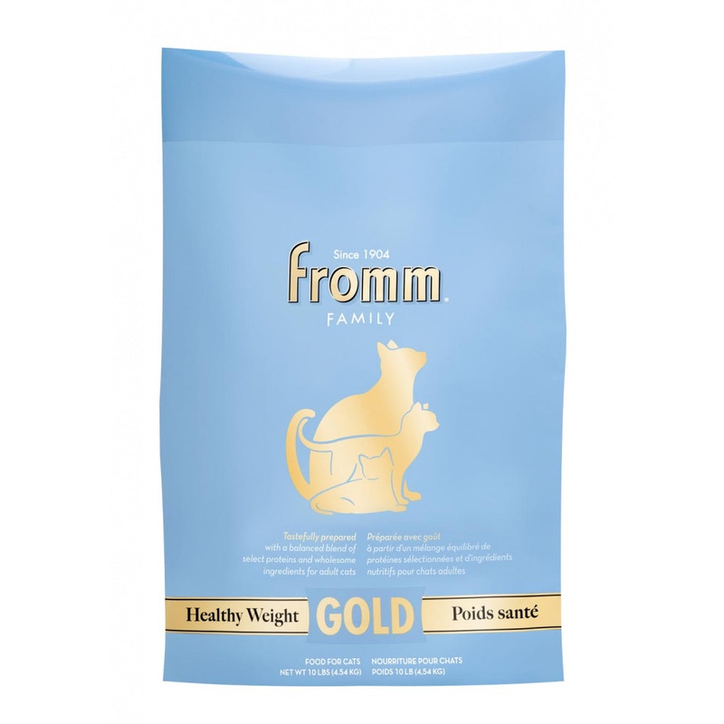 Tastefully prepared with a balanced blend of select proteins and wholesome ingredients for adult cats. Fromm Family Healthy Weight Gold Food for Cats is specially formulated to provide your less active adult cat with complete and balanced nutrition while h