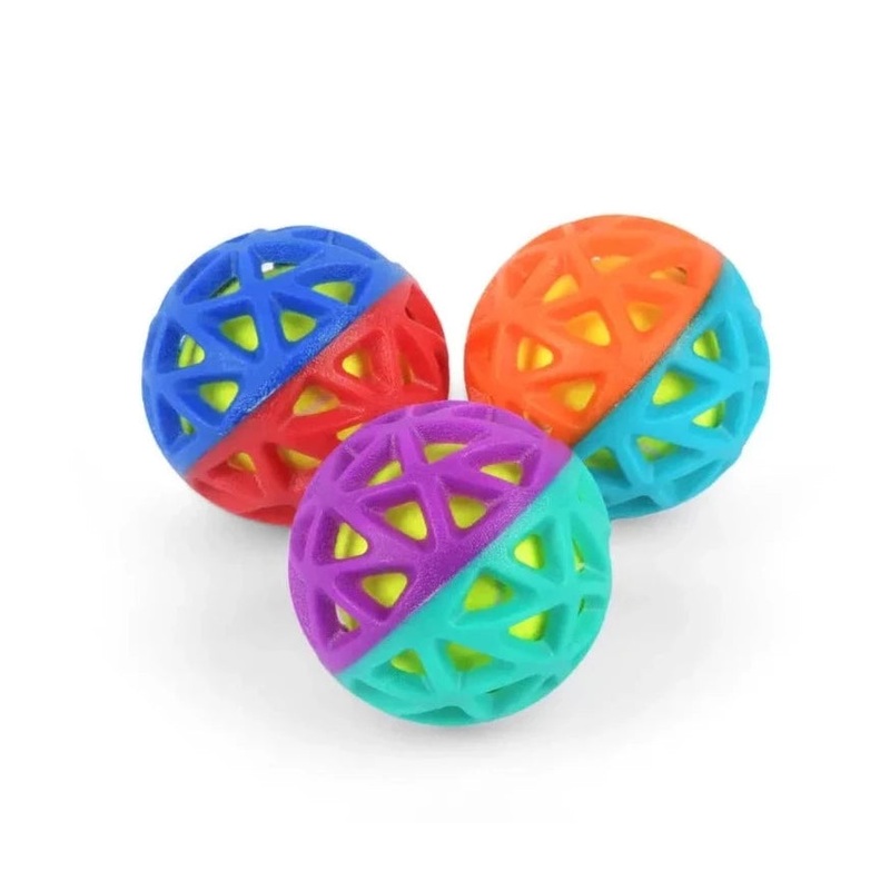 Dogs will be captivated as this ball soars through the sky spinning all around, surprised when they chomp down on its soft, flexible outer shell and then delighted when they activate the squeaky tennis ball inside!
