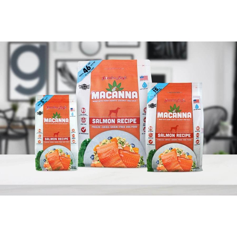 Mahalo!Open a bag ofMacannaand hear the drums of the luauaccompanied bythe smell ofourohanas(our familys) special recipesjust for your pet!A delightful blend ofrich protein, delicious coconut, fragrant turmeric,andnutty hemp,willmakeeven thepickiestof furry kids beg for more.Macanna’ssuperfood ingredient base is perfect for those dogs that need a unique recipe to fit their dietary needsand food sensitivities.Created as a holistic veterinarians dream recipe,Macannaprovidesthe sensitive types withdigestive and inflammation support for happier tummieswhile being a simple way to increase your pets nutrient intake without them knowing (shhhhhh theyll never know).Your dog willthank you with extratail wagsfor sure)!