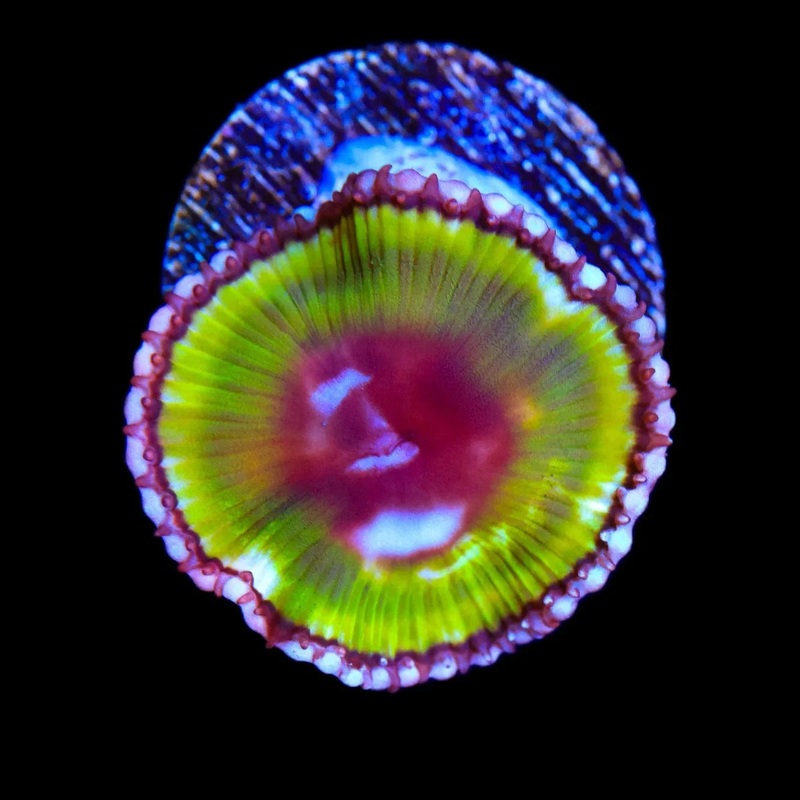 Feeding Zoanthids with nutrient-rich foods like Reef Roids, amino acids, and plankton blends supports their pigmentation and overall health. Stable water parameters and trace elements, such as iodine and iron, further enhance their vibrant appearance.
