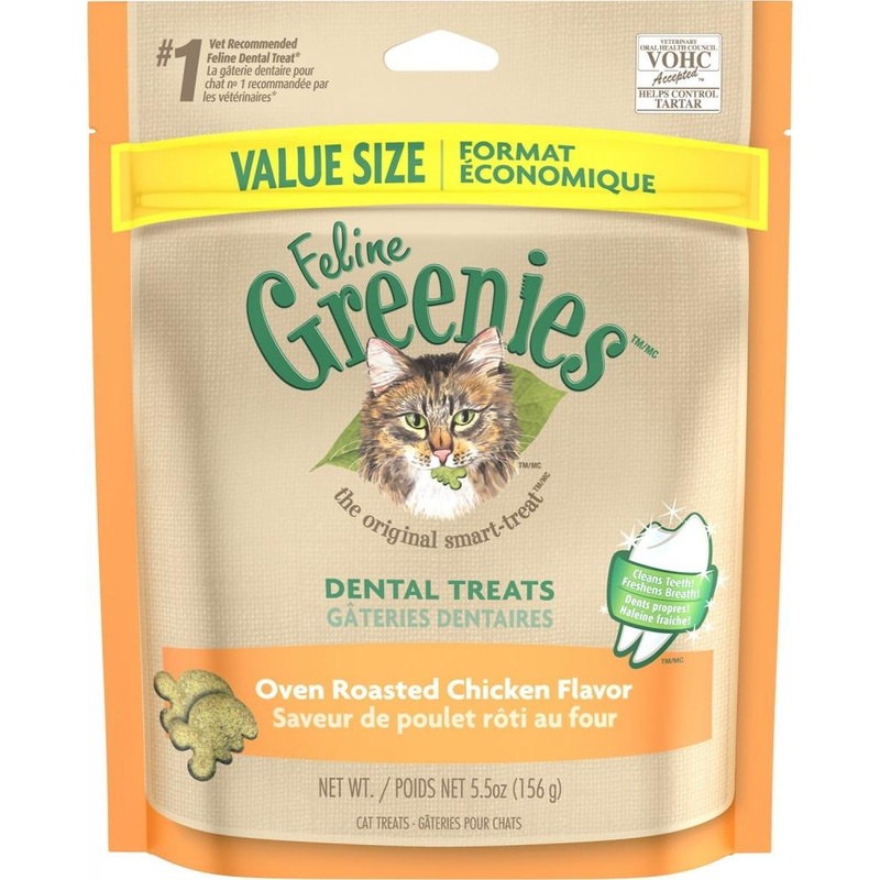 In an effort to help cats maintain good dental health, Greenies Feline Dental Oven Roasted Chicken Flavor Cat Treats have a crunchy texture to help reduce tartar and plaque build up! The perfect daily dental treat to keep your cats teeth in check!Why We Lo