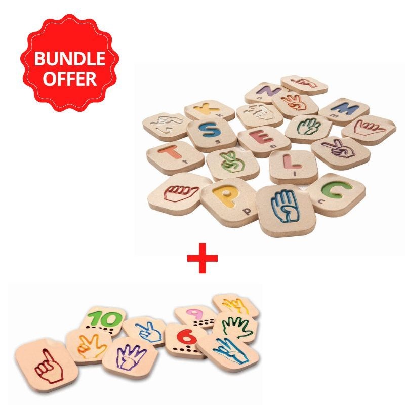 Hand Sign Alphabet and Numbers BundleHand Sign Alphabet A-Z: Add variety to your knowledge of Alphabets with this sign language set. The 26 piece set features an impressed upper case and lower case letters, and corresponding American hand sign language pic