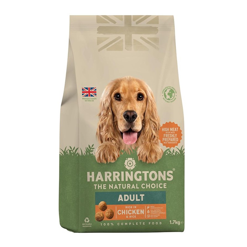 Harringtons Complete Chicken Adult Dry Dog Food is a 100% complete food, rich in chicken with rice, suitable for all dogs from 8 weeks onwards. This carefully formulated recipe uses all-natural ingredients to provide wholesome nutrition without artificial colors, flavors, dairy, soya, or added wheat. Harringtons offers the benefits typically associated with premium foods and is proudly made in the UK.
