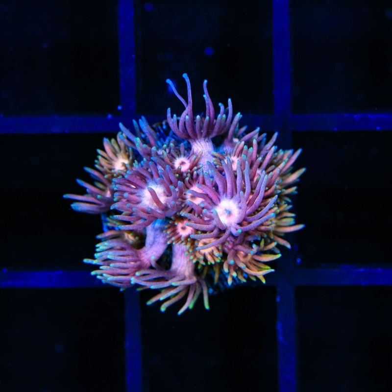 Typically showcasing hues of green, yellow, pink, or purple, Goniopora corals create a mesmerizing display as their polyps extend and sway with the flow of water. Known for their moderate care requirements and adaptability, they are an excellent choice for intermediate reef keepers looking to add a dynamic focal point to their aquascape.