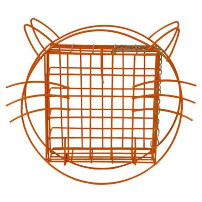 Simple cat shapeGreat for woodpeckers, chickadees, sparrows and other song birdsSteel constructionHolds 1 standard-sized suet or seed cake