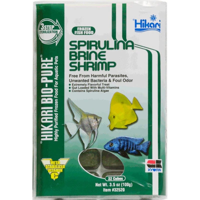 Whole brine shrimp gut loaded with spirulina algae and other natural algae, makes a quality, highly nutritious treat for all kinds of fish large and small. The gut-loading brine shrimp are packed with nutrients making it an ideal diet for new or finicky fish. Brine shrimp are commonly used to entice new, or finicky fish into eating frozen foods. Hikari’s Spirulina Brine Shrimp’s are gut-loaded spirulina algae which is renowned for its protein content, as well as containing all the necessary amino acids.