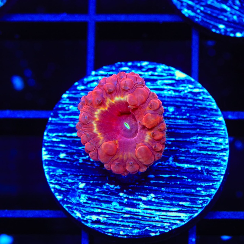 Product Title: Hot Ring Blastomussa Coral Product Description: WYSIWYG you will receive the exact piece shown. All frag plugs are 3/4" - 1" unless otherwise stated. Discover the majestic beauty of the Hot Ring Blastomussa coral, a true jewel for any marine