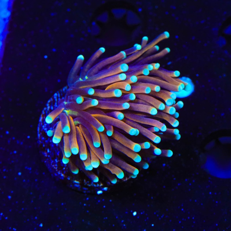Propagation begins by selecting healthy parent colonies and fragging them with precision to minimize stress. Each frag is mounted securely with reef-safe glue or epoxy and placed in grow-out tanks where they are closely monitored for growth and coloration. This controlled environment allows us to provide aquacultured Torch corals that are well-suited for captive systems and ensure sustainability within the reefing hobby.