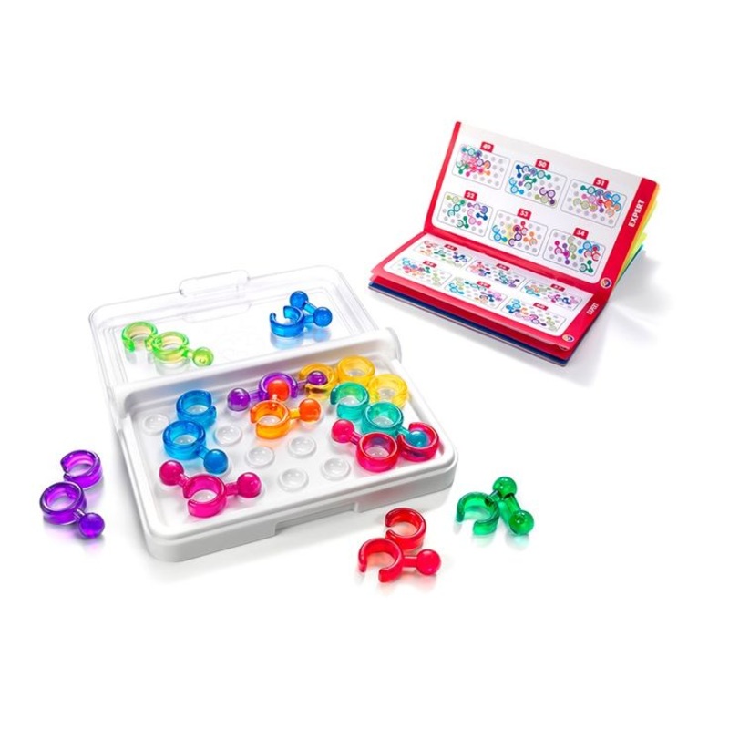 Fit all puzzle pieces on the game board. But watch out! There are 36 puzzle parts but only 24 free places on the game board! Open rings and balls of different puzzle pieces can occupy the same place when you link them the right way.